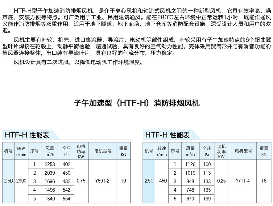 HTF-H型子午加速消防排煙風機,是介于離心風機和軸流式風機之間的一種新型風機,它具有效率高、矂 聲底、安裝方便等特點。